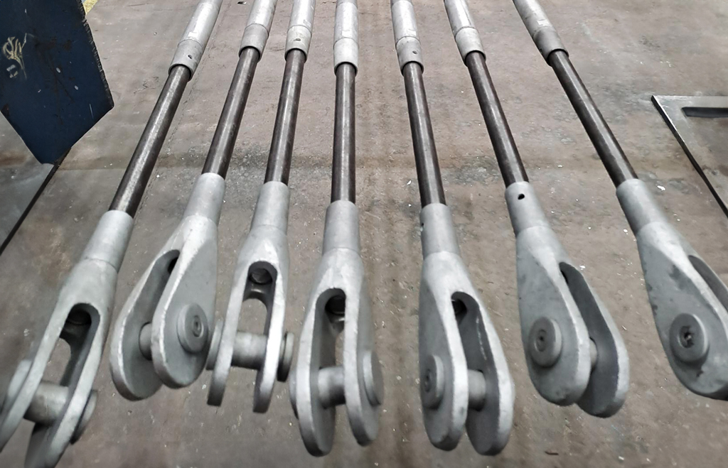 Hệ thống tension rod thường được chế tạo từ thép cường độ cao và kết hợp với các phụ kiện như đai ốc, khớp nối, bản neo và đầu liên kết, giúp dễ dàng lắp đặt và điều chỉnh lực trong quá trình thi công.